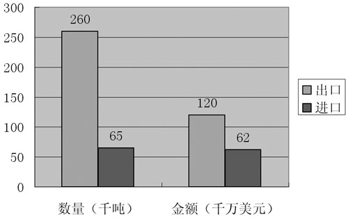 2008年中國(guó)磁性材料進(jìn)出口數(shù)量和金額