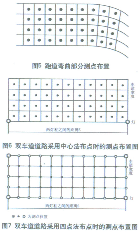 照度測(cè)量的范圍,在縱方向(沿道路走向)應(yīng)包括同一側(cè)的兩個(gè)燈桿之間的區(qū)域;而在橫方向,單側(cè)布燈時(shí)應(yīng)為整個(gè)路寬;雙側(cè)交錯(cuò)布燈、對(duì)稱布燈或中心布燈時(shí)可為1/2路寬。