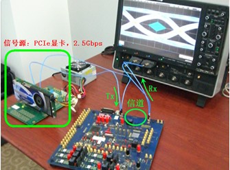 2. 使用眼圖醫(yī)生仿真背板系統(tǒng):PCIe顯卡發(fā)送出的信號通過SMA電纜連接到示波器,即直接測量發(fā)送端的波形,把背板(即24英寸傳輸線)的S參數(shù)文件調(diào)入眼圖醫(yī)生軟件,仿真出該信號通過背板后的波形(即RX的波形)。