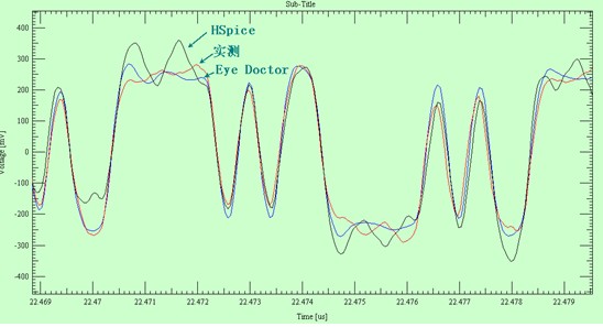 實(shí)測波形,HSPICE、Eye Doctor II仿真結(jié)果3者的波形對比如下: