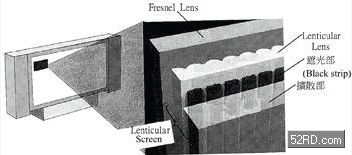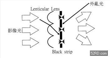 LenticularLens除了可以收斂遮光部開(kāi)口位置的光線之外,它還會(huì)將入射的影像光線擴(kuò)散到水平方向,此外LenticularLens為了支援高解析度(HD)影像,因此要求非常微細(xì)的鏡片間距(LensPitch),因?yàn)榇执蟮溺R片間距可能會(huì)導(dǎo)致FresnelLens、LenticularLens與投影影像畫素出現(xiàn)波紋。