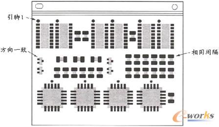 還有,相似的元件類型應(yīng)該盡可能接地在一起,所有元件的第一腳在同一個(gè)方向,如圖3所示。