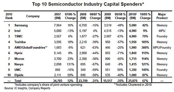 2010年半導體產(chǎn)業(yè)資本支出預計猛增51%