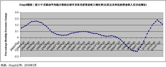據(jù)iSuppli公司,按12個(gè)月移動(dòng)平均值計(jì)算,2010年月度半導(dǎo)體營業(yè)收入將以史上最強(qiáng)勁的速度反彈。