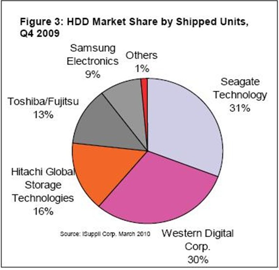 2009年第四季度希捷保持全球最大硬盤(pán)(HDD)廠商的排名,抵擋住了長(zhǎng)期排名第二的西部數(shù)據(jù)的強(qiáng)力挑戰(zhàn)。