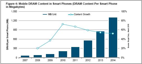 • 未來幾年智能手機使用的DRAM平均數(shù)量將增長九倍以上