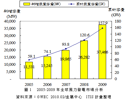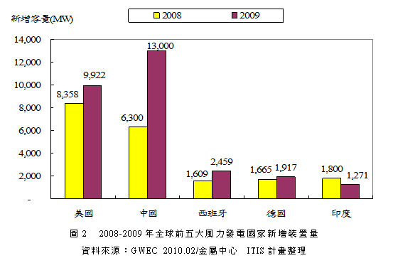 • 2009年新增風力發(fā)電裝置量成長31%