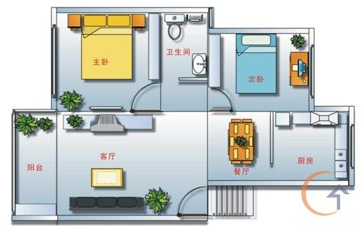本項目為一套2室2廳,室內(nèi)建筑格局為:客廳、餐廳、廚房、次臥、主臥、衛(wèi)生間、陽臺,如圖1所示: