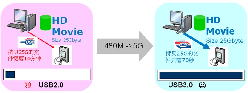 USB(Universal Serial Bus)即通用串行總線,用于把鍵盤、鼠標(biāo)、打印機、掃描儀、數(shù)碼相機、MP3、U盤等外圍設(shè)備連接到計算機,它使計算機與周邊設(shè)備的接口標(biāo)準(zhǔn)化。在USB1.1版本中支持兩種速率:全速12Mbps和低速1.5Mbps;而USB2.0中支持三種速率:高速480Mbps、全速12Mbps、低速1.5Mbps。在2002年Intel把USB2.0端口整合到了計算機的南橋芯片ICH4上,推動了USB2.0的普及,目前除了鍵盤和鼠標(biāo)為低速設(shè)備外,絕大多數(shù)設(shè)備都是速率達480M的高速設(shè)備。