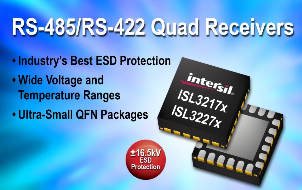 ISL3217/27x:Intersil最新RS-485/RS-422四端口接收器提供最佳ESD防護(hù)