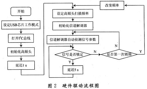硬件驅(qū)動程序是系統(tǒng)設(shè)計中很關(guān)鍵的一個部分,它直接關(guān)系到各硬件芯片是否能正常穩(wěn)定的工作。硬件的驅(qū)動是由主控芯片來完成,在本方案中將uSB傳輸控制芯片CY7C68013作為主控芯片,它內(nèi)置增強型的8051內(nèi)核,通過I2C總線來控制前端的高頻頭和信道解調(diào)芯片,完成對前端的驅(qū)動。