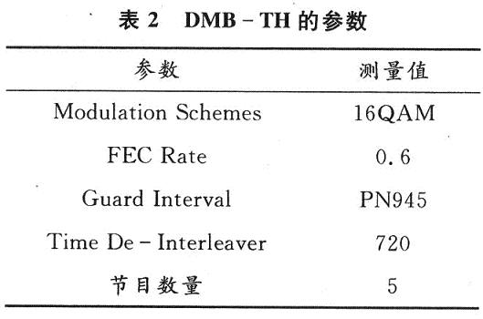 在完成了USB數(shù)字電視接收棒的系統(tǒng)總體方案設(shè)計之后,根據(jù)所選用的芯片,參照相應(yīng)技術(shù)手冊,設(shè)計了電路原理圖并制作了印刷電路板。在硬件制作期間,同時進行軟件的開發(fā)工作。在硬件制作完成后,利用KEILC和VC6++進行了調(diào)試。利用筆記本電腦在室內(nèi)和運動狀態(tài)下分別進行了長時間(12h)測試,USB端口接收數(shù)據(jù)的速度穩(wěn)定在1.8MB/s。測得廈門地區(qū)國標(biāo)DMB-TH數(shù)字電視的參數(shù)見表2。