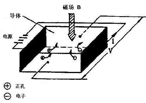 在平板半導(dǎo)體介質(zhì)中,電子移動(dòng)(有電場(chǎng))的方向,將因磁力的作用(有磁場(chǎng)),而改變電子行進(jìn)的方向。若電場(chǎng)與磁場(chǎng)互相垂直時(shí),其傳導(dǎo)的載子(電子或電洞),將集中于平板的上下兩邊,因而形成電位差存在的現(xiàn)象。該電位差即霍爾電壓(霍爾電壓)在實(shí)際的霍爾組件中,一般使用物質(zhì)中之電流載子為電子的N型半導(dǎo)體材料。將一定之輸入施加至霍爾組件時(shí)之輸出電壓,利用上述之關(guān)系予以分析時(shí),可以獲致下列的結(jié)論: