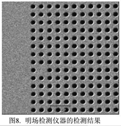 根據(jù)明場(chǎng)檢測(cè)儀器對(duì)通孔刻蝕的檢測(cè)結(jié)果,發(fā)現(xiàn)明場(chǎng)檢測(cè)技術(shù)只能抓住對(duì)通孔未刻蝕開的缺陷,而對(duì)于刻蝕過(guò)程中產(chǎn)生的刻蝕不完全缺陷則很難檢測(cè)到。結(jié)果表明,由于此缺陷在通孔內(nèi)太過(guò)深入,探測(cè)器能夠收集到的反射電子較少,信號(hào)很弱,導(dǎo)致明場(chǎng)檢測(cè)技術(shù)無(wú)法正常而有效的檢測(cè)到這類缺陷的存在(如圖8所示)。