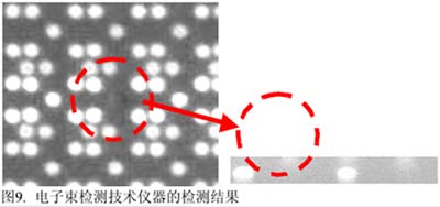 實(shí)驗(yàn)表明通孔刻蝕不足缺陷完全可以被E-scan300檢測(cè)到。其不足在于,電子束檢測(cè)技術(shù)以聚焦電子束作為檢測(cè)源,雖然靈敏度極高,但是檢測(cè)速度慢、價(jià)格高,而且高靈敏度的同時(shí)也帶來(lái)了很多干擾信號(hào),在實(shí)際生產(chǎn)中,在許多干擾信號(hào)中找出正確的通孔刻蝕不足缺陷將受到很大程度的限制(如圖9所示)。