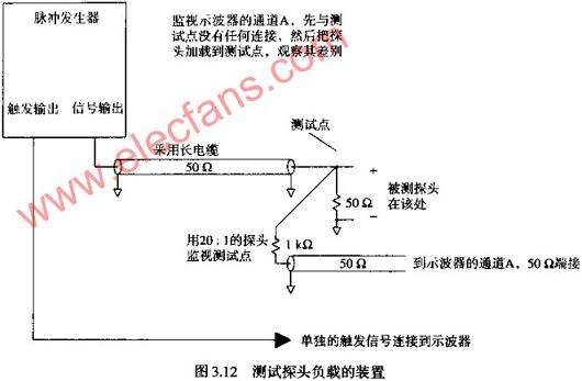 參見圖3.12,我們通過一個50歐阻抗的長傳輸線,將信號源連接到一個50歐的端接器在端接位置連接一個感應(yīng)探頭,該探頭由一個1KΩ的電阻和一條5Ω阻抗的RG-174短同軸電纜組成。這個感應(yīng)同軸電纜的另一端接到一臺高速采樣示波器的50Ω端接的輸入端上。