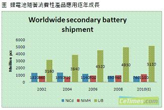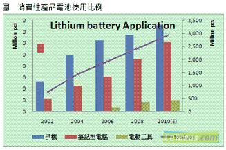 消費(fèi)性產(chǎn)品的發(fā)展趨勢迅速牽動(dòng)電池產(chǎn)業(yè),根據(jù)集邦科技(TrendForce)旗下研究部門EnergyTrend表示,鋰電池隨著量產(chǎn)數(shù)量增加,價(jià)格與性能也逐漸為消費(fèi)者所接受,包括手機(jī)電池與NB電池,也以鋰電池為使用主流,而伴隨著新材料的革新,動(dòng)力鋰電池也成功在電動(dòng)工具以及兩輪車輛上展露頭角,讓鋰電池突破僅有消費(fèi)性產(chǎn)品的應(yīng)用局限。