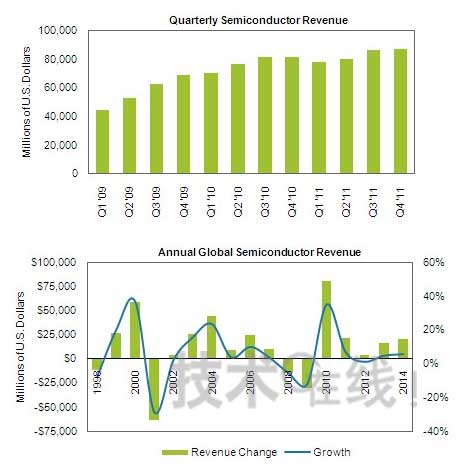 iSuppli從正面否定了對(duì)于此次快速增長(zhǎng)所擔(dān)心的“泡沫”和“二次探底”。關(guān)于泡沫問題,有觀點(diǎn)認(rèn)為,此前曾創(chuàng)下歷史最高增長(zhǎng)率的2000年出現(xiàn)了需求泡沫,所以此次的增長(zhǎng)會(huì)不會(huì)也是泡沫。但是,iSuppli指出,2000年的增長(zhǎng)是繼1999年經(jīng)濟(jì)繁榮之后的產(chǎn)物,而此次增長(zhǎng)的背景卻是經(jīng)濟(jì)形勢(shì)從2009年以前的經(jīng)濟(jì)低迷期開始的復(fù)蘇,因此這兩種情況“在循環(huán)本質(zhì)上完全不同”。關(guān)于二次探底,iSuppli高級(jí)副總裁戴利·福特(Dale Ford)表示,“我不同意二次探底將要到來(lái)的觀點(diǎn)”。他認(rèn)為,從2010年下半年開始,2010年半導(dǎo)體市場(chǎng)將恢復(fù)到通常模式。也就是說,2010年第二季度將環(huán)比增加8.2%,達(dá)到峰值,第三季度將環(huán)比增加6.7%、第四季度將環(huán)比增加0.4%,出現(xiàn)減速,進(jìn)入2011年后,由于通常的季節(jié)因素,將轉(zhuǎn)為環(huán)比負(fù)增長(zhǎng)。iSuppli預(yù)測(cè),回到這種標(biāo)準(zhǔn)增長(zhǎng)模式后,2011年的半導(dǎo)體市場(chǎng)將增長(zhǎng)7%。