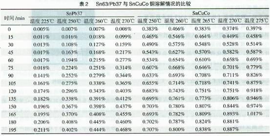 一些其它值得注意的現(xiàn)象包括:對于初始銅含量大約為O.3%的未經(jīng)使用的SnCuCo,與銅含量為0的新啟用的SnPb37相比較,在經(jīng)歷各種溫度狀態(tài)下的研究后發(fā)現(xiàn),銅溶解的速度顯得相當(dāng)?shù)穆?br /> [page]