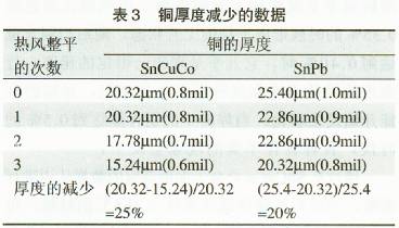 在通過第一次的時候,無鉛化合金比起SnPb37焊料除去的銅要少。同樣,當(dāng)通過第二次的時候,僅有12.5%和10%被移除,在經(jīng)歷第三次的時候僅有25%和20%的銅被移除(表3)。