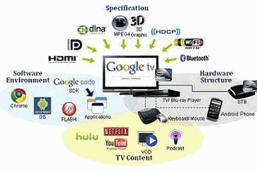 GoogleTV是一個(gè)整合計(jì)算機(jī)系統(tǒng)、媒體播放與網(wǎng)絡(luò)應(yīng)用的概念型電視平臺(tái),由Google公司主導(dǎo)研發(fā),并且免費(fèi)開源發(fā)布。GoogleTV的應(yīng)用涵蓋下列領(lǐng)域: