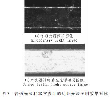 基于以上條件,本文設(shè)計了專用于PCB厚密板的適配環(huán)形光源,為考核光源的實(shí)際效果,將光源和鏡頭對準(zhǔn)PCB上同一區(qū)域。鏡頭倍率也調(diào)節(jié)至相等。采集到如圖5所示的對比圖像。