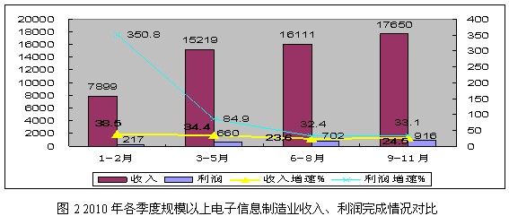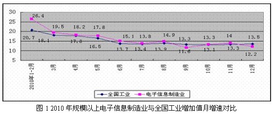 2010年是“十一五”規(guī)劃收官之年,也是我國電子信息產(chǎn)業(yè)回升調(diào)整的重要一年,受擴(kuò)內(nèi)需政策成效顯現(xiàn)和外需市場逐步回暖的共同作用,行業(yè)出現(xiàn)恢復(fù)性增長,總體呈現(xiàn)前高后穩(wěn)態(tài)勢。軟件產(chǎn)業(yè)和對外貿(mào)易出現(xiàn)新突破,經(jīng)濟(jì)效益穩(wěn)步提高,投資持續(xù)高位增長,產(chǎn)品結(jié)構(gòu)調(diào)整深入,產(chǎn)業(yè)鏈向上延伸的趨勢更加明 顯,企業(yè)、市場和區(qū)位布局出現(xiàn)新趨向,行業(yè)為推動信息化發(fā)展和促進(jìn)兩化融合發(fā)揮積極作用,在國民經(jīng)濟(jì)發(fā)展和全球產(chǎn)業(yè)布局中日益占據(jù)重要地位。