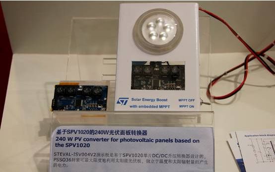 在本次展會上,ST公司展示了基于四相交錯DC/DC轉(zhuǎn)換器SPV1020的240W光伏面板轉(zhuǎn)換器方案,號稱可以將太陽能板的轉(zhuǎn)換效率提高2個百分點(diǎn)。[page]