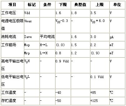 圖2為AS系列的外觀形狀。除了業(yè)界標(biāo)準(zhǔn)的SOT23(2.9×2.8×1.2mm),SON4(2.0×2.1×0.6mm)之外,加上超小型的XSON(1.2×1.2×0.4mm),共3種規(guī)格,可根據(jù)實(shí)際空間組合選擇。表1是AS系列的代表產(chǎn)品AS-M15TA-R的規(guī)格一覽表,其中最重要的是工作磁場(chǎng)。工作磁場(chǎng)是指輸出信號(hào)改變的磁場(chǎng),為了防止跳躍現(xiàn)象(“高”和“低”在閾值附近反復(fù)出現(xiàn)的現(xiàn)象),具有磁滯區(qū)間,如圖3所示。除了標(biāo)準(zhǔn)特性外,還具有靈敏度可變,工作電壓的擴(kuò)大可變等特性。詳細(xì)的規(guī)格標(biāo)準(zhǔn)就不在此詳述。圖4是為了減少消耗電流進(jìn)行的抽樣測(cè)定的說(shuō)明簡(jiǎn)圖。