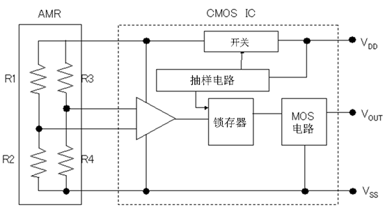 (*1)AMR(Anisotropic-Magneto-Resistance)各向異性磁阻效應(yīng)。各向異性是指具有方向性,在這里是指可以檢測(cè)出任意方向的磁力。