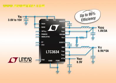 Linear推出同步降壓型穩(wěn)壓器LTC3634應(yīng)用于DDR存儲器供電
