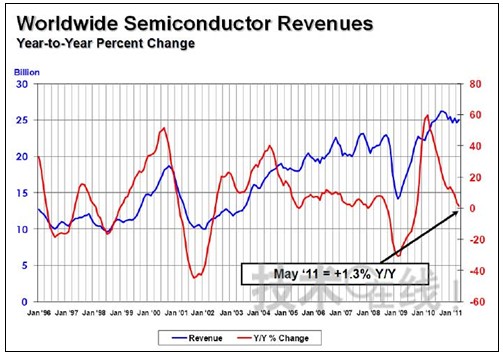 - 2011年5月全球半導(dǎo)體銷售額僅增長(zhǎng)1.8% 出現(xiàn)停滯和衰退