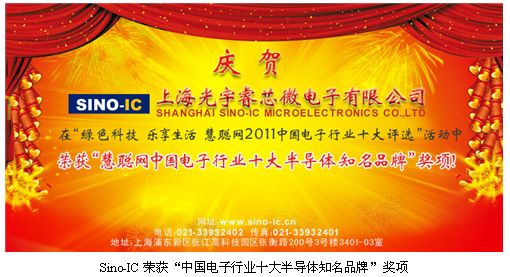 2011年7月28日,號稱中國電子行業(yè)“奧斯卡”的“綠色科技 樂享生活 2011中國電子行業(yè)十大評選活動” 頒獎盛典在北京釣魚臺國賓館隆重舉行。上海光宇睿芯微電子有限公司參與了此次評選活動,并在眾多的參與企業(yè)中脫穎而出,榮獲“中國電子行業(yè)十大半導體知名品牌”獎項!