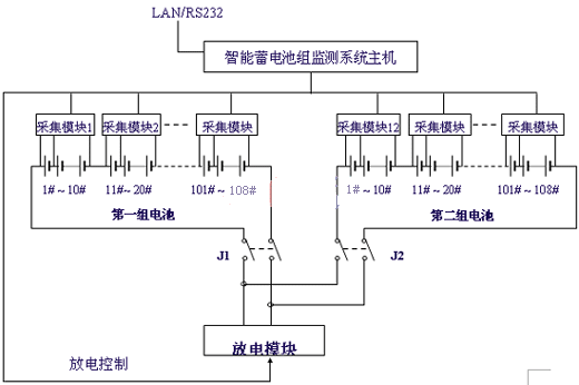 與電池巡檢儀不同,在這個系統(tǒng)增加了一個放電模塊,放電模塊能承受較大的沖擊電流,它接收監(jiān)控主機的放電命令,接通放電回路,電池通過負(fù)載放電,同時采集模塊將采集每節(jié)電池電壓的變化,在主機中得到了每節(jié)電池內(nèi)阻特性曲線。放電模塊也可作為長時間放電負(fù)載,實現(xiàn)對電池容量的核對性測試及整組電池的活化處理。這個系統(tǒng)實現(xiàn)對蓄電池全方面的監(jiān)測和維護(hù)管理。