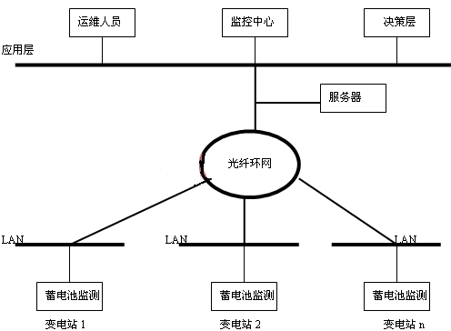 蓄電池在線監(jiān)測還可以利用通訊手段進(jìn)行網(wǎng)絡(luò)化管理(如圖4),將幾個站或一地區(qū)的蓄電池監(jiān)測通過光纖進(jìn)行組網(wǎng),建立一個實時遠(yuǎn)程智能化蓄電池監(jiān)測網(wǎng)絡(luò)化管理系統(tǒng),以實現(xiàn)信息集中和遠(yuǎn)程控制,使運行檢修人員、相關(guān)人員和管理決策層能夠通過局域網(wǎng)內(nèi)的任何一個終端用IE瀏覽的方式即可實時掌握各變電站蓄電池的運行情況及其性能變化趨勢,使蓄電池得到及時的維護(hù),同時也為“設(shè)備狀態(tài)檢修”提供可靠依據(jù),將“定期維護(hù)檢修”轉(zhuǎn)變?yōu)?ldquo;狀態(tài)檢修”,從而實現(xiàn)對蓄電池的科學(xué)化管理,保證系統(tǒng)的可靠、安全運行。