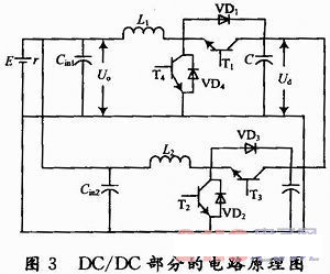 圖3所示的DC/DC變換器不但能對(duì)直流輸入電壓進(jìn)行變換處理,而且還可以對(duì)直流輸入電流進(jìn)行調(diào)節(jié)和控制,在DC/DC階段實(shí)現(xiàn)能量調(diào)控。
