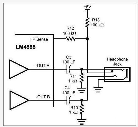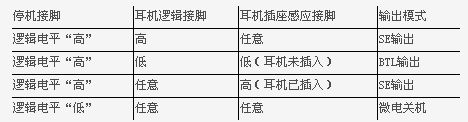 基于每個耳機檢測電路端口設計會採用不同要求,因此,該聲頻子系統(tǒng)提供兩個獨立的耳機(HP)控制輸入接腳。耳機的允許輸入可啟動SE輸出耳機模式和關閉BTL輸出模式。耳機感應檢測輸入需要用一個常規(guī)立體聲耳機插孔配合一起使用。剩余的HP邏輯輸入,能允許使用一個標準邏輯電平(Logic Level)來控制。