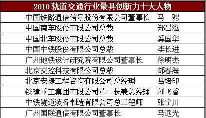 2011年中國(guó)軌道交通行業(yè)步入一個(gè)井噴式發(fā)展的新階段,中國(guó)已經(jīng)成為世界最大的軌道交通市場(chǎng)。眾多企業(yè)是如何與時(shí)俱進(jìn)不斷創(chuàng)新?行業(yè)又該如何記錄那些不囿于桎梏勇于創(chuàng)新的先進(jìn)?總結(jié)本年度在軌道交通行業(yè)勇于創(chuàng)新的企業(yè)和人物,由RT《軌道交通》雜志的主辦2011年度軌道交通創(chuàng)新力企業(yè)TOP50評(píng)價(jià)活動(dòng),將向業(yè)界隆重推出以智慧和膽識(shí)譜寫(xiě)創(chuàng)新篇章的軌道交通先驅(qū)!