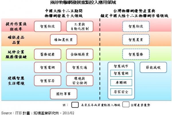 歐美經(jīng)濟體危機四伏,中國大陸市場需求反而撐起全球經(jīng)濟半邊天。不可諱言,面對全球不景氣環(huán)境,未來兩岸合作將是臺灣經(jīng)濟得以維持成長的主要動能之一。根據(jù)拓墣產(chǎn)業(yè)研究所ITIS計劃顯示,目前全球皆密切關(guān)注的“中國大陸十二五規(guī)劃”中,對于通訊基礎(chǔ)建設(shè)和IC產(chǎn)業(yè)的高度重視,連帶也為“物聯(lián)網(wǎng)”產(chǎn)業(yè)的快速發(fā)展埋下伏筆。