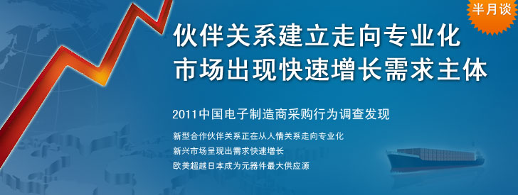 缺貨危機(jī)過后,中國電子系統(tǒng)制造商和電子元器件供應(yīng)商對風(fēng)險(xiǎn)共擔(dān)、利益共享的伙伴關(guān)系有了新的理解。 2011中國電子制造商采購行為調(diào)查發(fā)現(xiàn),在供應(yīng)商認(rèn)證與引入過程中建立了系統(tǒng)流程并很好實(shí)施的比例顯著增加;讓供應(yīng)商參與早期產(chǎn)品設(shè)計(jì)的比例顯著增加;培養(yǎng)供應(yīng)商的比例顯著增加。合作伙伴關(guān)系建立正在從人情關(guān)系走向更加專業(yè)化和系統(tǒng)化。此外,新興市場在新型伙伴關(guān)系基礎(chǔ)上呈現(xiàn)出需求快速增長。