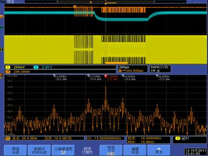 下面我們以一個(gè)13.56MHz的RFID讀寫器系統(tǒng)為例,介紹MDO4000的跨域調(diào)試應(yīng)用。
