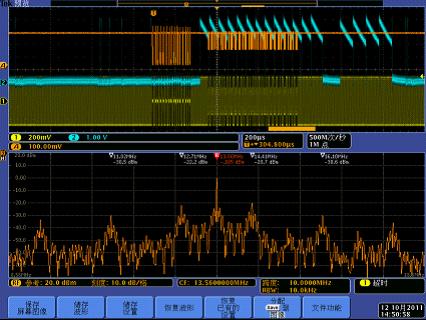 在調(diào)試RFID系統(tǒng)時(shí),工程師面臨的一個(gè)重要的困難是如何測量標(biāo)簽的返回信號。由于標(biāo)簽返回信號的幅度很小,使用普通的示波器往往難以捕獲這一信號,更不要說對其幅度和頻率做進(jìn)一步分析了。主要原因是普通示波器的動態(tài)范圍只有40dB,無法捕獲微弱的標(biāo)簽信號。MDO4000具有60dB的動態(tài)范圍,以及低至-152dB/Hz 的底噪,能夠很好地勝任同時(shí)捕獲讀寫器信號和標(biāo)簽信號的任務(wù)。其獨(dú)特的AvsT射頻信號幅度的時(shí)域波形功能,甚至可以顯示標(biāo)簽信號幅度變化過程。
