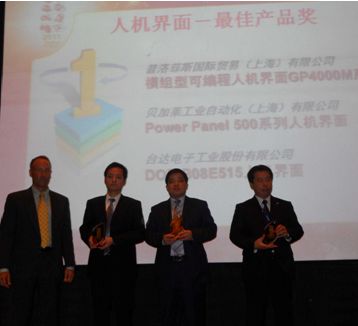 11月2日,在上海工博會(huì)期間召開的“創(chuàng)新 未來(lái)”2011(第七屆)CEC年度最佳產(chǎn)品獎(jiǎng)評(píng)選頒獎(jiǎng)典禮上,臺(tái)達(dá)人機(jī)“高手”——DOP-B08E515以其高分辨率、高容量、高畫質(zhì)、高速度、高抗干擾能力等多項(xiàng)優(yōu)秀技術(shù)性能指標(biāo)在百余自動(dòng)化產(chǎn)品的激烈角逐中脫穎而出,榮獲“2011年度最佳產(chǎn)品獎(jiǎng)”!