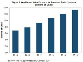 - 全球車載高檔音響系統(tǒng)銷售額增長(zhǎng)率將達(dá)到兩位數(shù)