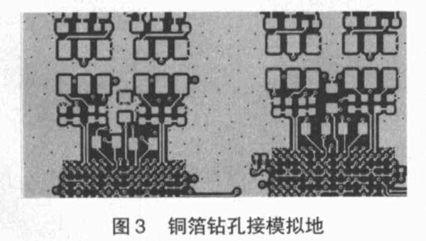 (5 )大面積覆銅箔接模擬地。在模擬電路部分覆大面積銅箔并在空白區(qū)域鉆密集的孔接到模擬地,這樣可以起到屏蔽隔離作用,從而減少模擬信號(hào)之間的相互干擾,而且還可以起到散熱作用。
