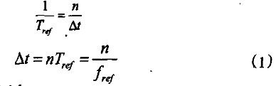 脈沖計(jì)數(shù)法是用標(biāo)準(zhǔn)信號形成被計(jì)數(shù)的參考時(shí)鐘信號,周期為Tref,頻率為fref,通過測量時(shí)間間隔Δt內(nèi)參考時(shí)鐘信號的個(gè)數(shù)n,直接顯示Δt的值。
