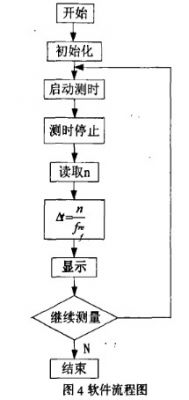 系統(tǒng)軟件包括對各工作電路的初始化設(shè)置,根據(jù)分頻計(jì)數(shù)電路得到的n值,計(jì)算時(shí)間間隔時(shí)間間隔Δt,送給顯示電路顯示。流程圖如圖4所示。