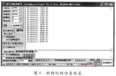 從圖6可以看出,PIC18F452已經(jīng)測(cè)出了設(shè)定的幾個(gè)輸入頻率的數(shù)值,仿真結(jié)果表明該方案可行。