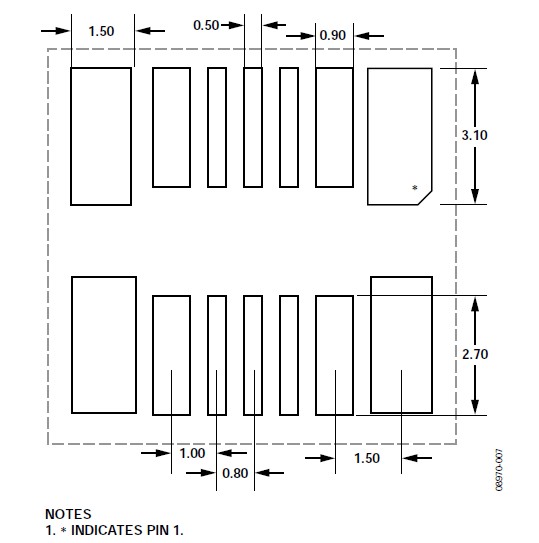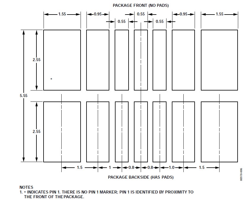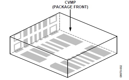 關(guān)于垂直和水平安裝方向的CVMP焊盤布局(焊盤圖形),請參閱本應用筆記的"焊盤布局"部分。CVMP背面的焊盤布局如圖7所示。注意,封裝正面上有一些額外的焊盤(見圖4)沒有顯示在焊盤布局中,這些焊盤用作測試點,不應進行電氣連接。