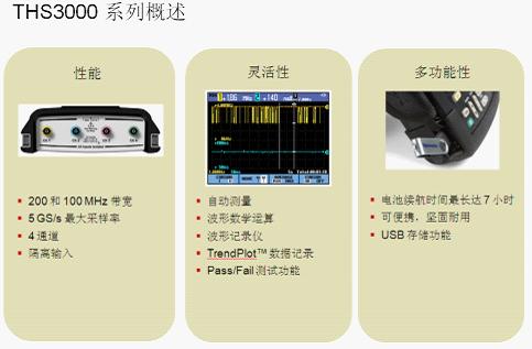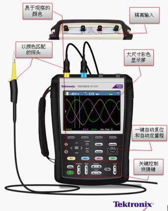 圖1:適用于實驗室和現(xiàn)場環(huán)境的電池供電手持式示波器THS3000系列。